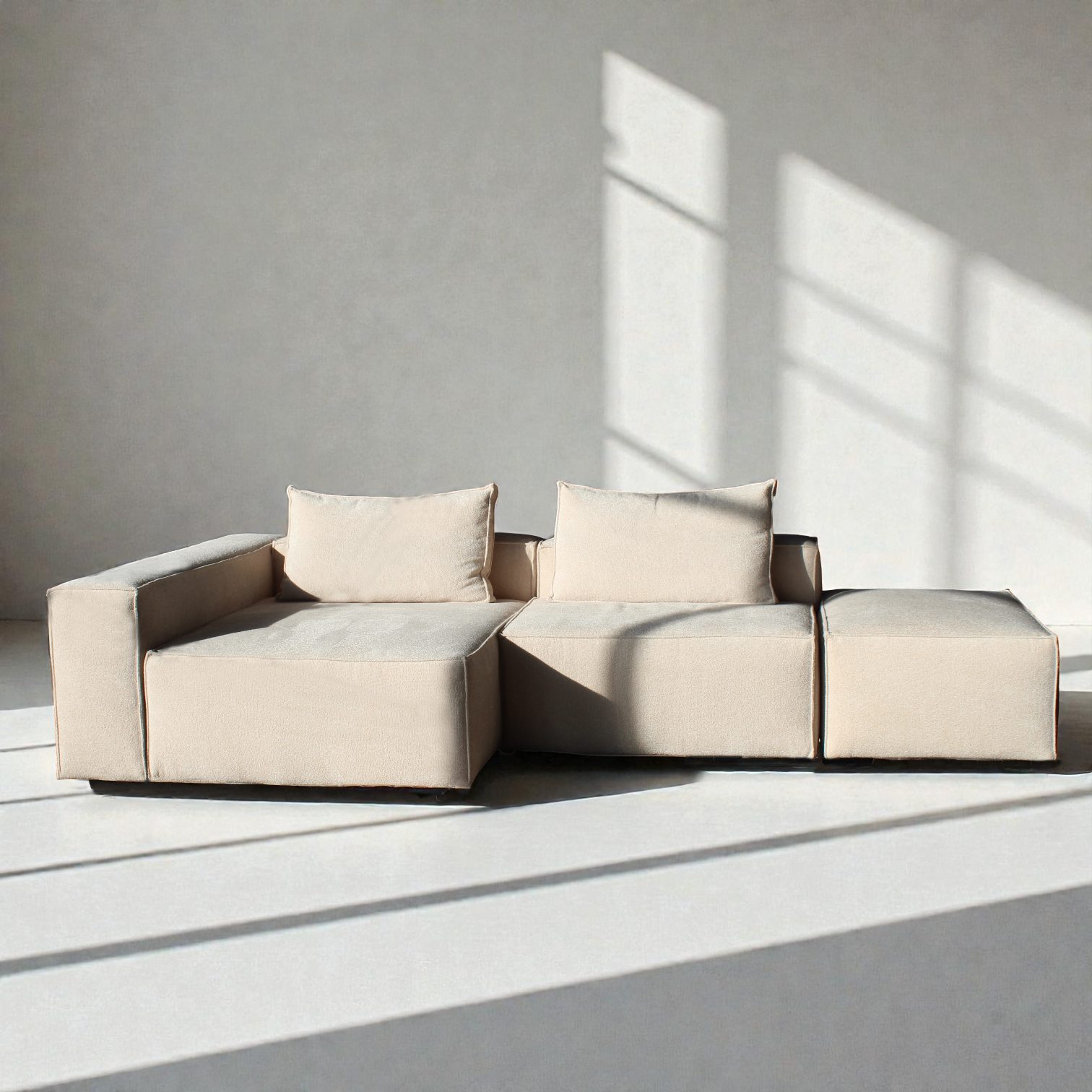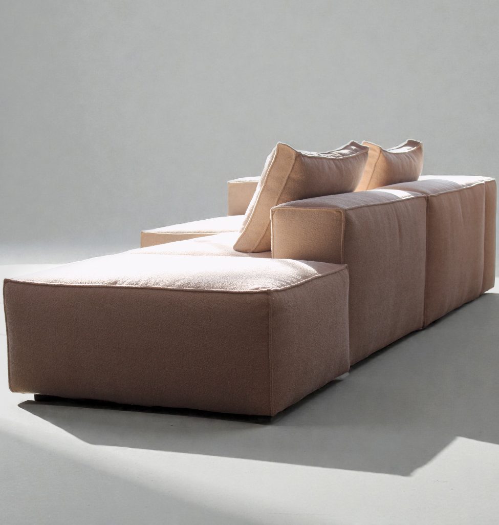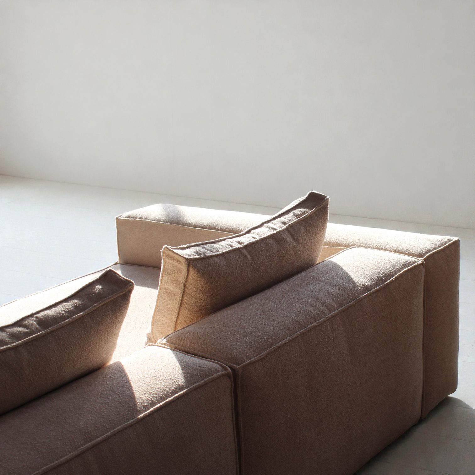 I moduli squadrati e bassissimi, quasi rasoterra, eliminano ogni distanza tra il corpo e il pavimento. La seduta diventa un'isola, un territorio da abitare liberamente, da ridisegnare ogni giorno secondo l'umore, la luce, il numero di persone. Non esiste una configurazione "giusta": esiste solo quella del momento.