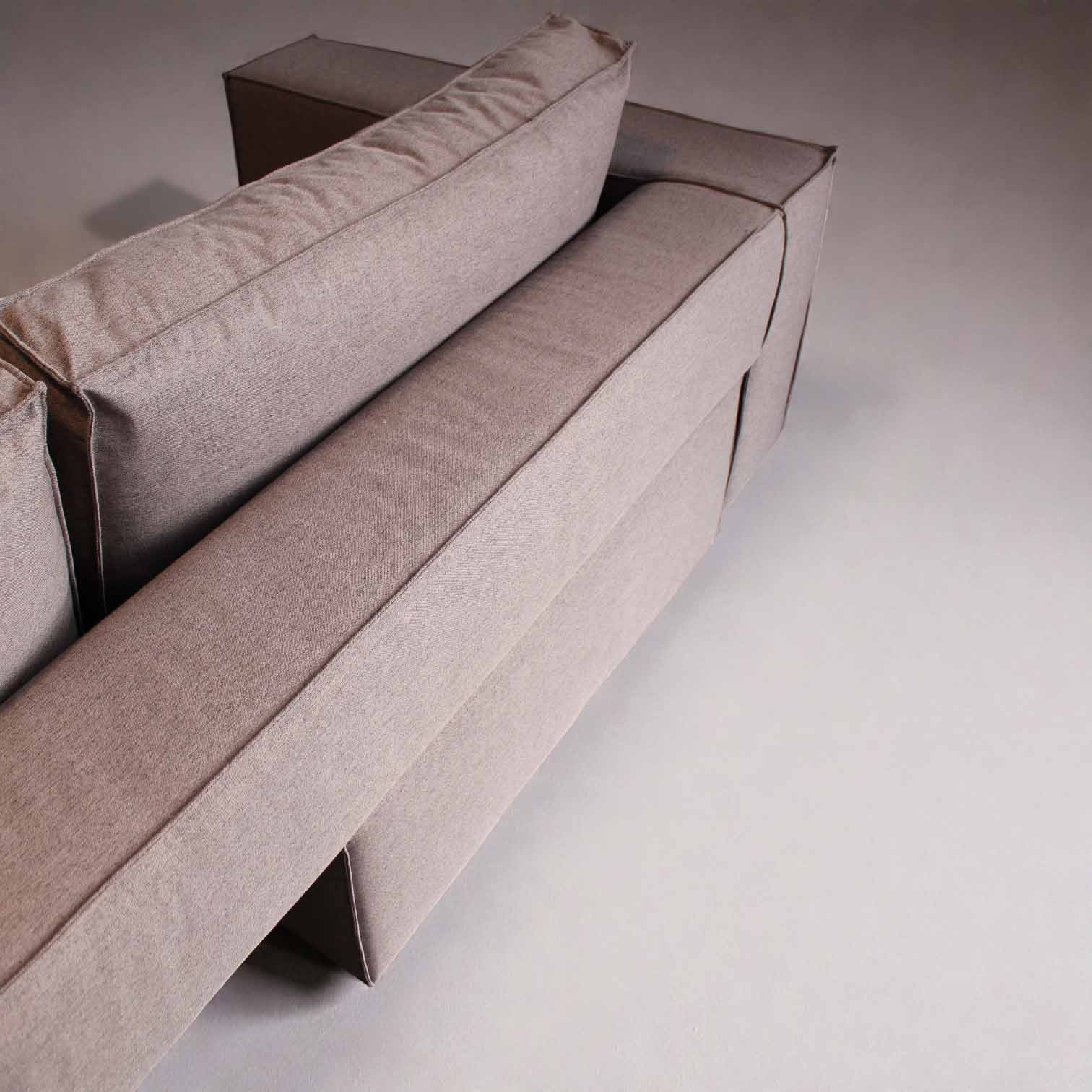 La vera innovazione risiede nelle sedute scorrevoli da 30 cm, dotate di un pratico sistema su rotelle: una soluzione che consente di trasformare il divano in pochi gesti, passando da una configurazione compatta a una più profonda e rilassante.