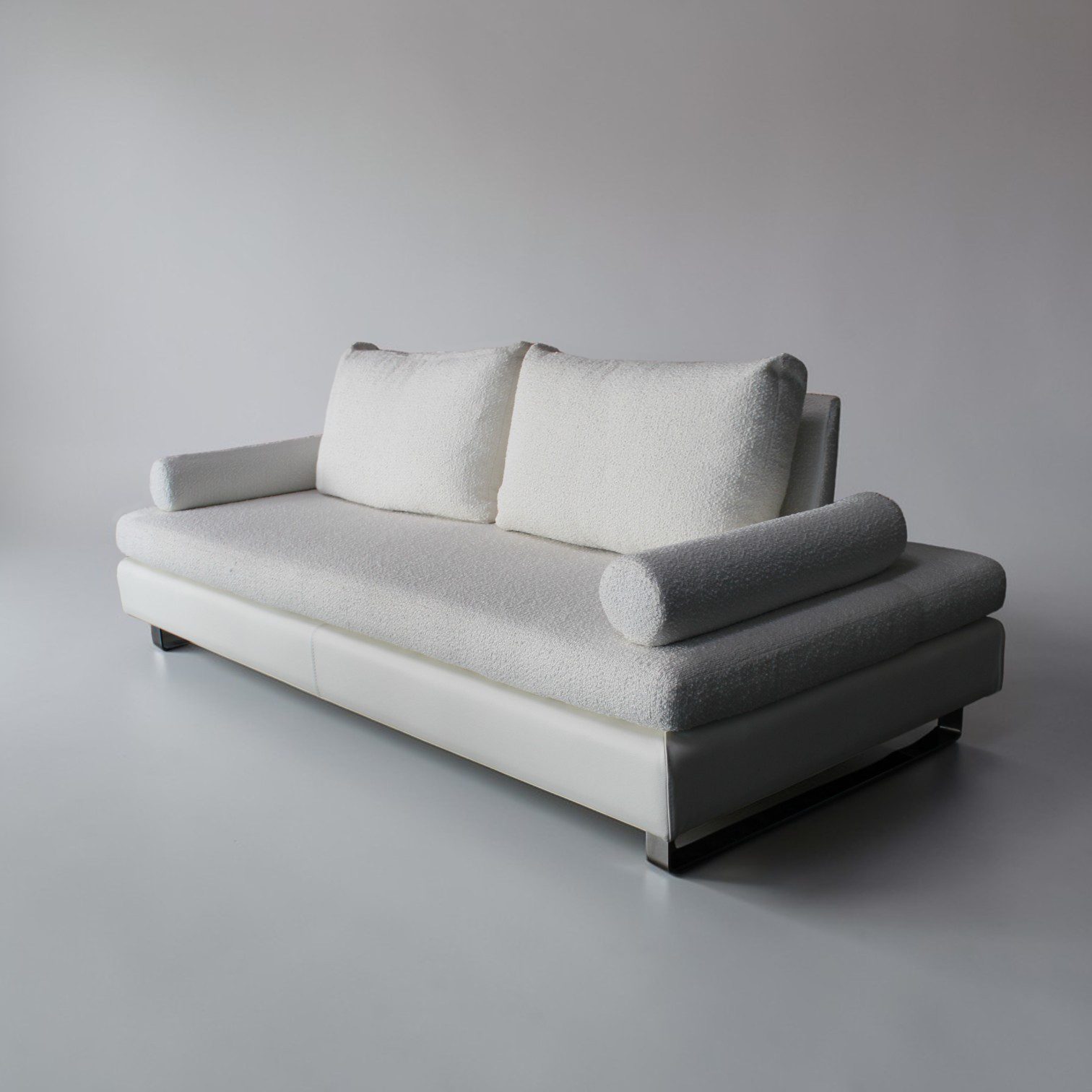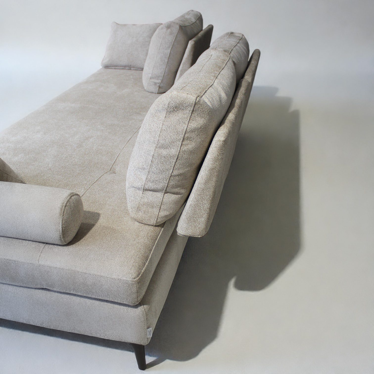 Gli schienali traslanti permettono di regolare la profondità della seduta, passando facilmente da una posizione più composta a una più ampia e rilassata, ideale per il relax quotidiano. La seduta unica nasconde al suo interno un materasso da 12 cm, che rende Monaco perfetto anche per essere utilizzato come soluzione per il riposo, offrendo un comfort superiore rispetto ai classici divani letto. Il piedino alto slancia la struttura e dona leggerezza visiva, rendendolo adatto sia ad ambienti moderni che più eleganti.